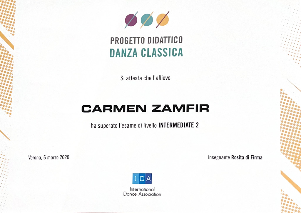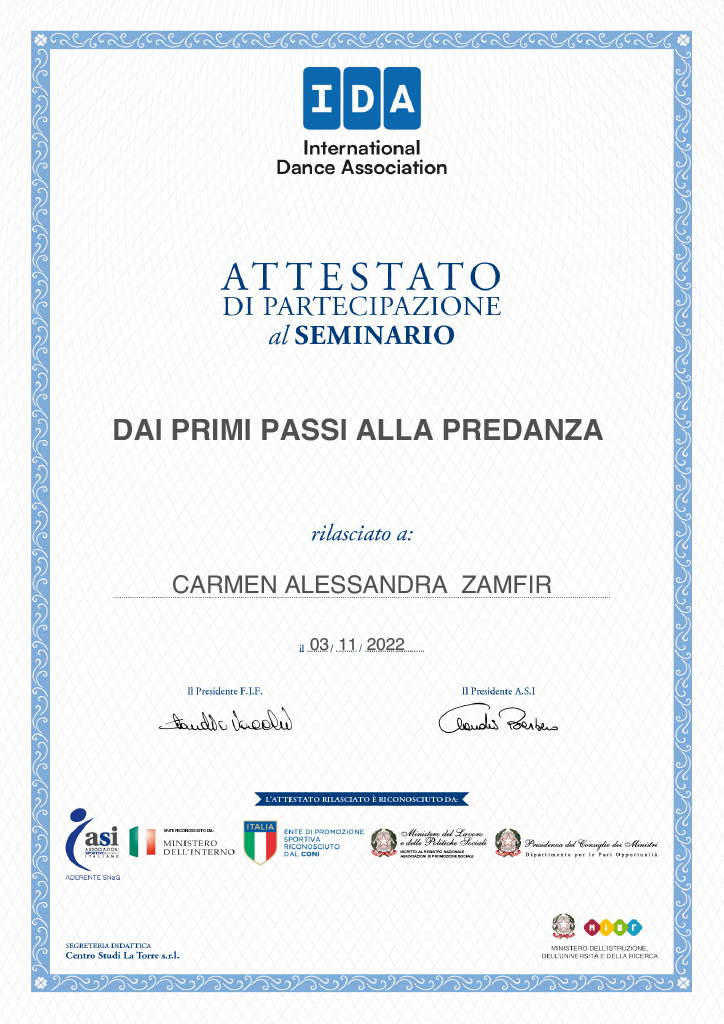 - Certificazione “Dai primi passi alla predanza” (IDA – Ravenna)