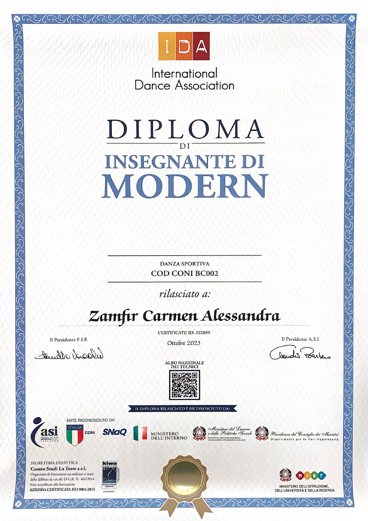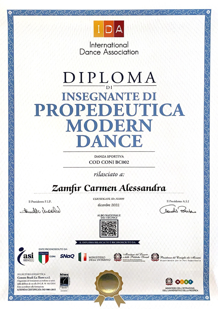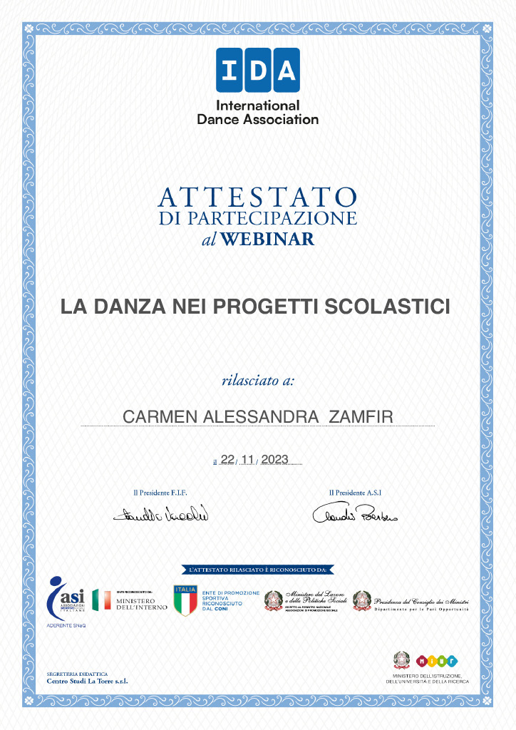 - Certificazione “La danza nei progetti scolastici” (IDA – Ravenna)