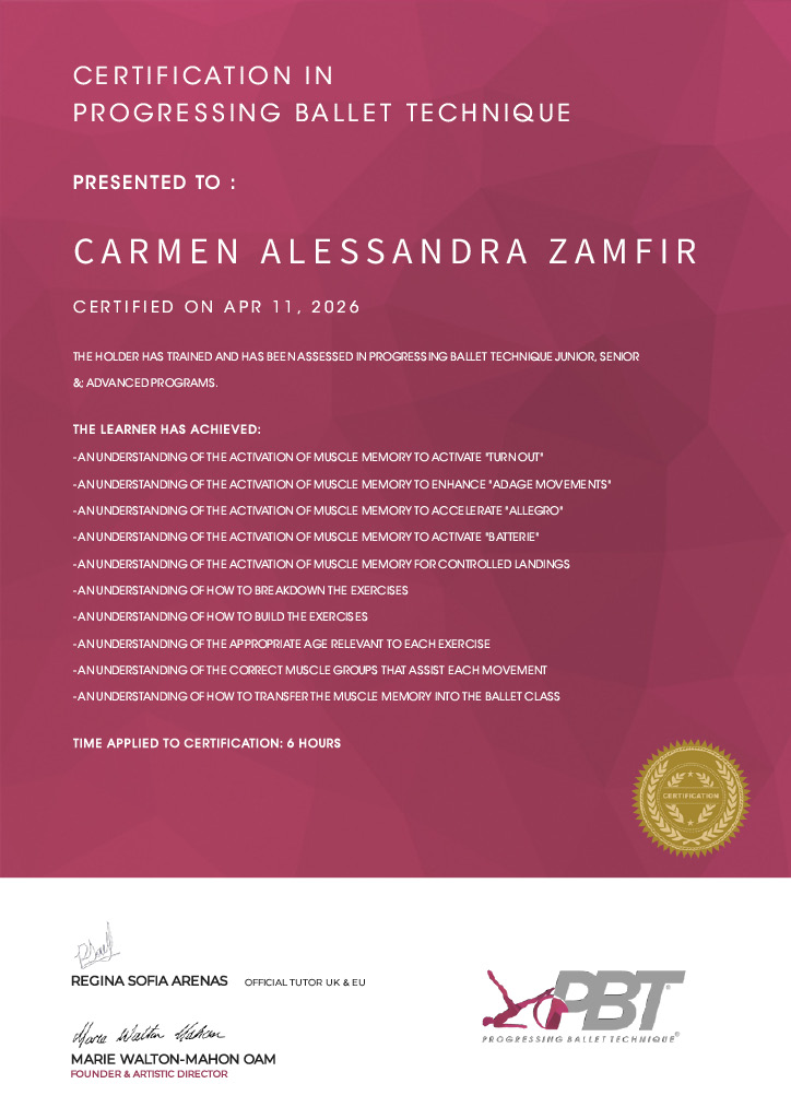 - Certificazione PROGRESSING BALLET TECHNIQUE
